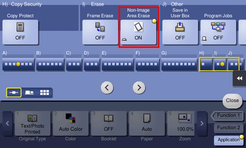 Automatically detects the original and erases shadows outside the original when making copies with the ADF open and the original placed on the Original Glass.
