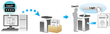 ID & Print is a function that saves print data to the ID & Print User Box of this machine when user authentication is installed. This function does not print data immediately, thereby preventing printed materials from being missing or left. You need to perform user authentication on this machine to print the data saved in the User Box. Therefore, this function is suitable for safely printing highly confidential documents. When authentication succeeds, the print data of the login user is automatically printed. This enhances security as well as ensures smooth operation.