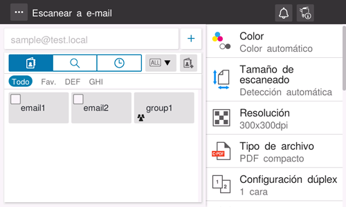 Toque [Escanear a e-mail] en la pantalla de inicio.