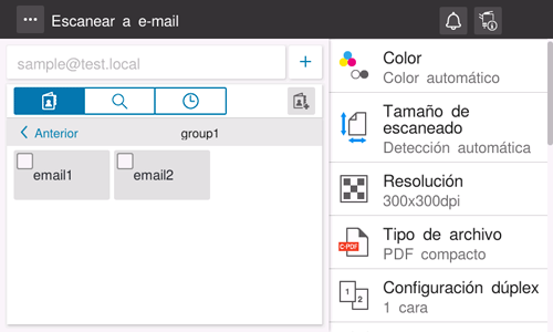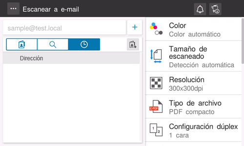 • [Prefijo/Sufijo] se visualiza cuando se ha definido [Configuración Prefijo/Sufijo] (Aquí). Es posible recuperar un nombre de dominio registrado o similar para complementar la entrada.