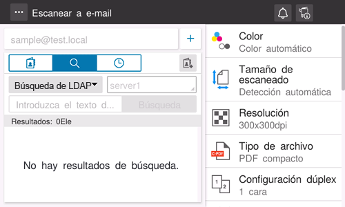 • Es necesario un ajuste previo para utilizar la búsqueda de LDAP. Para obtener más información sobre el procedimiento de configuración, consulte Aquí.