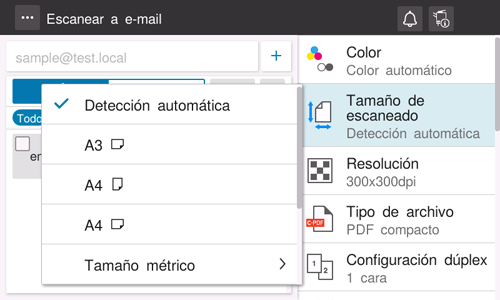 Si el tamaño del original no se detecta automáticamente, especifique el tamaño del original que desea escanear.