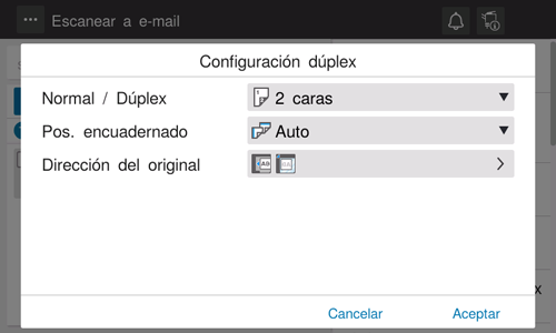 [Normal/dúplex] | Permite seleccionar la cara del original que se va a escanear (Normal/Dúplex). |