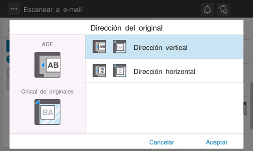 [Dirección del original] | Permite especificar la orientación para cargar el original. |