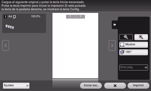 Compruebe la visualización de la vista previa y gire la página o modifique la configuración, según sea necesario.