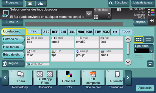 Especifique la dirección con una entrada directa o seleccionando entre los destinos registrados en la máquina. Solo se puede especificar un destino.