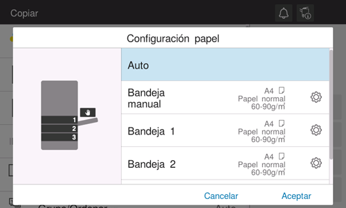 Al seleccionar [Auto] se selecciona automáticamente una bandeja que contenga papel del mismo tamaño que el original.