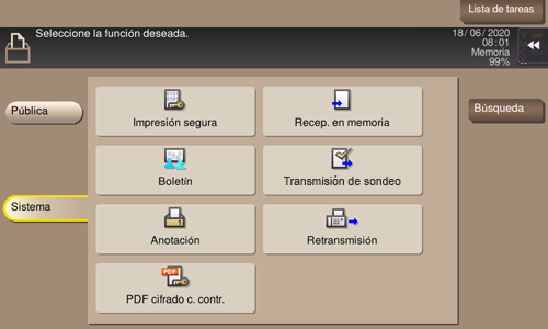 Toque [Sistema] - [Impresión segura].