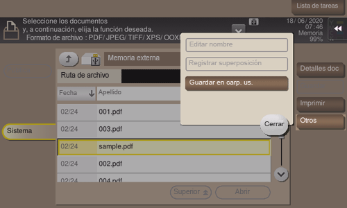 Toque [Guardar doc. memoria ext. en carp. usuario].