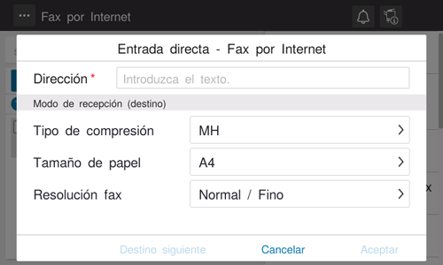 [Modo de recepción (destino)] | Especifique la capacidad de recepción de fax por internet del destinatario.