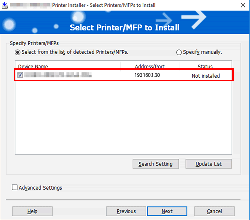 Seleccione esta máquina en la lista de impresoras detectadas.