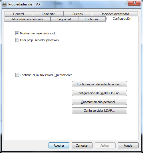 Abra la ficha [Configuración] y seleccione [Confg servidor LDAP...]