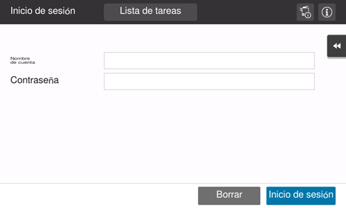 Si está activado el seguimiento de cuentas en la máquina, se visualiza la pantalla de inicio de sesión. Introduzca el nombre de cuenta y la contraseña para habilitar el seguimiento de cuenta.
