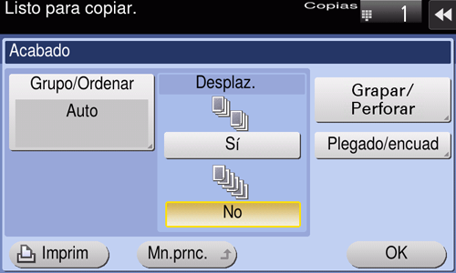 [Agrupar/Ordenar] | Permite seleccionar el método de salida cuando se realizan copias múltiples.