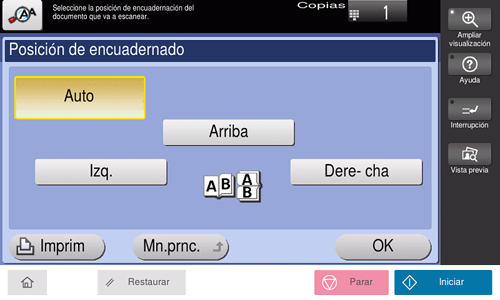 [Automática] | Establece automáticamente la posición de encuadernación del original.