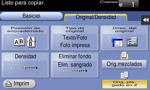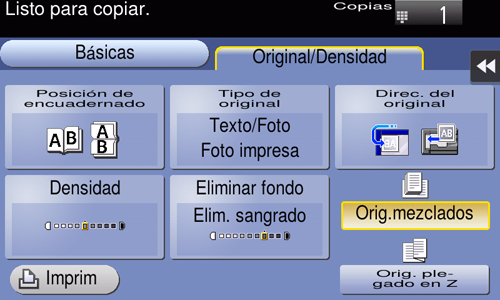 [Papel copiado] | Permite copiar un original que salió de la impresora o copiadora con una densidad uniforme, al nivel óptimo de calidad de imagen. |