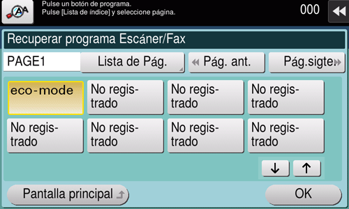 El programa escáner/fax se debe registrar previamente en la pantalla normal. Para obtener más información sobre el procedimiento de registro, consulte Aquí.