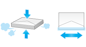 Al cargar sobres, elimine el aire de su interior y presione de forma segura sobre la línea de plegado de la solapa. De lo contrario, el sobre se arrugará o se producirá un atasco de papel.