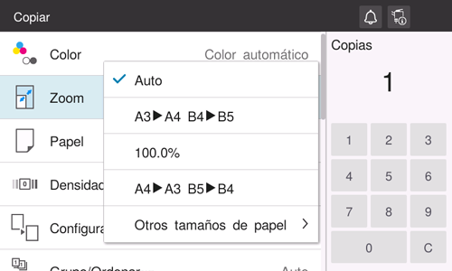 R. Sí. Es posible realizar automáticamente una copia con el porcentaje de zoom óptimo para que se ajuste al tamaño del papel que desea aplicar al original cargado.