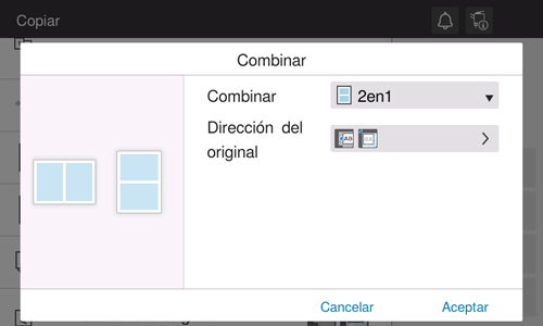 En [Combinar], seleccione el número de páginas para copiar en la misma cara de una sola hoja.