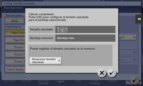 Para aplicar el tamaño calculado al tamaño de papel, toque [OK].