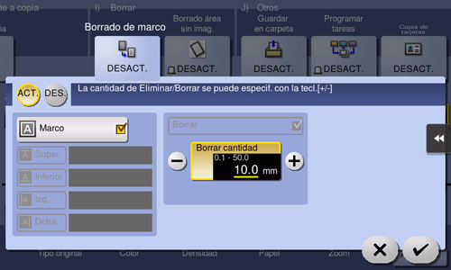 Para borrar los cuatro lados del original al mismo ancho, especifique el ancho que desea borrar.