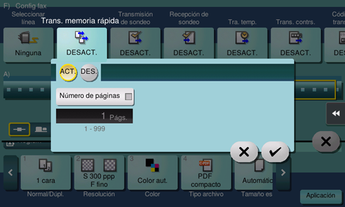 [ACT.]/[DES.] | Seleccione [ON] para especificar Transmisión memoria rápida. |