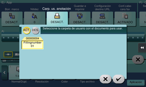 Si se selecciona Carpeta usuario de anotación, los originales se envían añadiendo un número de archivo.