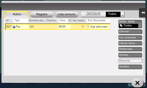 Las tareas pendientes de reenvío se reenvían automáticamente transcurrido un tiempo mediante la función de rellamada automática. Sin embargo, también se puede reenviar el fax manualmente.