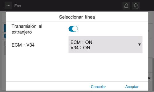 Esta máquina utiliza el protocolo de comunicación V.34 de manera predeterminada. Puede enviar faxes con la opción V.34 cancelada si no es posible establecer una comunicación en el modo Super G3 según las condiciones de la línea telefónica (por ejemplo, el equipo remoto o esta máquina se conecta a una línea telefónica mediante PBX).