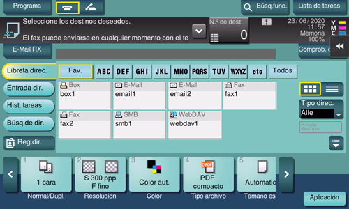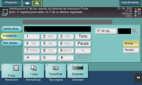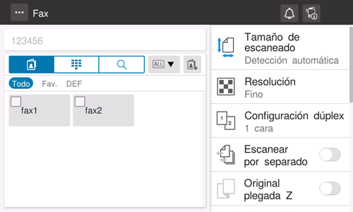 Cuando se asigna a [Comprobar destino] el valor ON al registrar un destino de fax, se ejecuta la función de comprobar destino y enviar antes de enviar un fax a un destino registrado. Para obtener más información sobre cómo se registra un destino de fax, consulte Aquí.