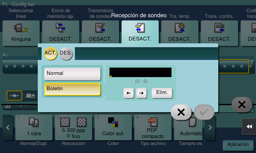 Recep memoria obligatoria, Transm. reenvío, Recep. PC-Fax