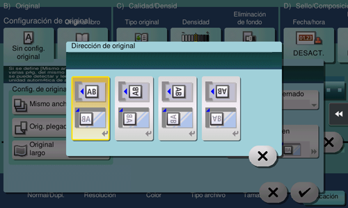 Permite especificar la posición de encuadernado según la orientación del original.