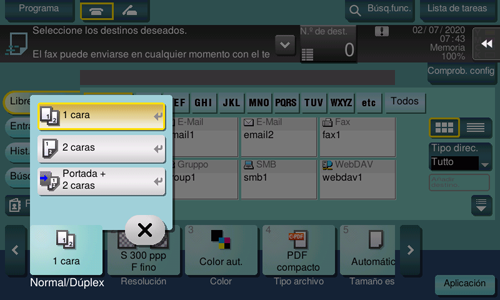 Permite seleccionar la cara del original que se va a escanear (Normal/Dúplex).