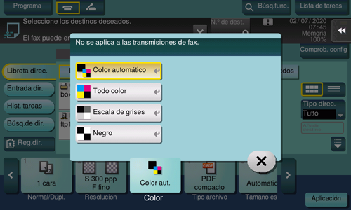 [Color automático] | Determina automáticamente [Todo color] o [Escala de grises] para ajustarse al color del original al escanearlo. |