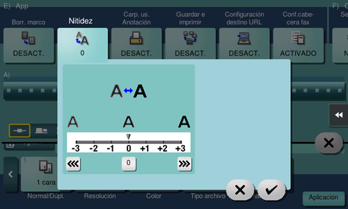Al especificar [Nitidez] se acentúan los bordes de las imágenes como el texto de las tablas y los gráficos para mejorar la legibilidad. Esta función también permite suavizar los contornos desiguales de una imagen o definir imágenes borrosas.