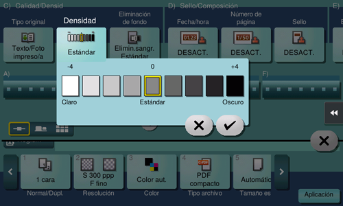 Ajuste la densidad (Oscuro o Claro) para escanear el original.