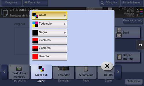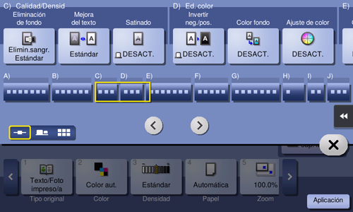[Color automático] | Permite realizar copias con ajustes de color que se adaptan a los colores del original escaneado. |