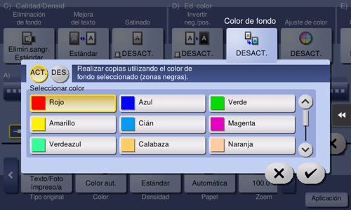 Colorea el área en blanco del original con el color de fondo especificado para realizar las copias.