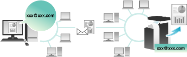 Si se envía el correo electrónico con el archivo adjunto a la dirección de correo electrónico de la máquina, es posible imprimir el archivo en la máquina sin utilizar el controlador de impresora. Si es necesario, puede guardar un adjunto al e-mail en una carpeta de usuario de la máquina.
