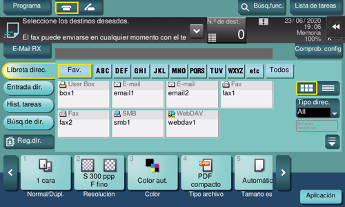 Toque [Recepción de correo electrónico] para consultar el servidor de correo. Si hay algún e-mail entrante, recíbalo e imprima su adjunto.