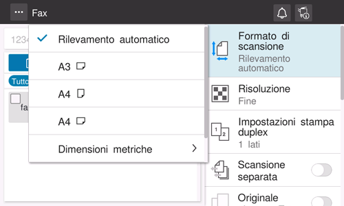 Quando il formato dell'originale non è rilevato correttamente, specificare il formato dell'originale che si desidera scansionare.