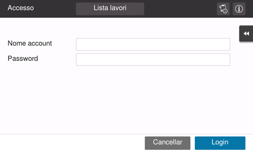 I contenuti della schermata di Login possono variare a seconda delle impostazioni di autenticazione della macchina.
