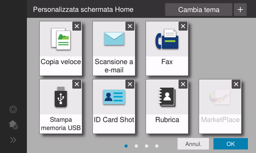 Quando l'applicazione MarketPlace è installata, è possibile modificare i tasti funzione visualizzati sulla pagina iniziale (home) per ciascun utente che ha effettuato il login.