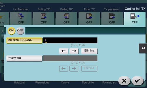 La TX riservata e la Distribuzione relè sono disponibili se una macchina remota supporta le comunicazioni Codice F.