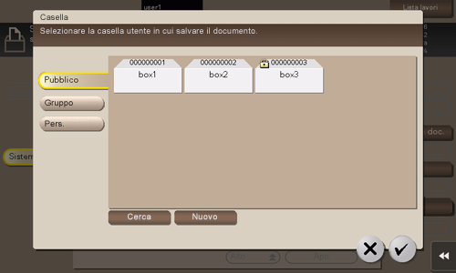 È possibile selezionare un file e copiarlo in un'altra casella utente. La destinazione può essere selezionata dalla casella utente pubblica, casella utente personale e casella utente di gruppo.