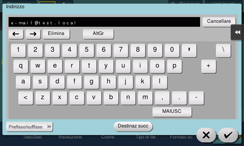 Inserire l'indirizzo e-mail di destinazione.