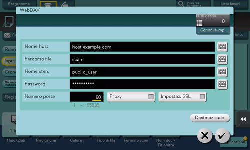 Inserire direttamente le informazioni di destinazione per la trasmissione WebDAV.