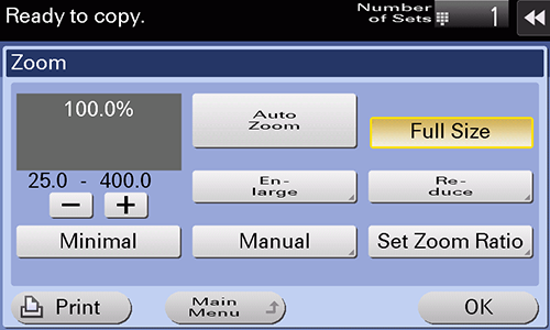 [Set Zoom Ratio] | Makes a copy at the registered zoom ratio. |