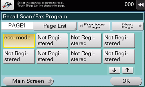 Program is a function to register a combination of frequently used option settings as a recall key. For transmission, recall the program with a single touch of a button on the main screen of Enlarge Display.